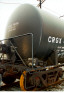 Here are some detail shots of CRGX 4856 taken on 1/16/99. I also made field measurements, and plan to make scale drawings in the future. No reporting marks on top of the tank, and note the lack of stenciling on the manway. Tank diameter is 119 inches, and height of the bottom of the tank above the rails is 32 inches at center. Tank length from end seam to center is 17' 7.5"; and note the center of tank is at the manway center, not at the middle weld seam. Truck centers are spaced at 29'6", and overall length is 43' 1". Also, notice that this is not a straight tank, there is a very slight bend to the tank body.